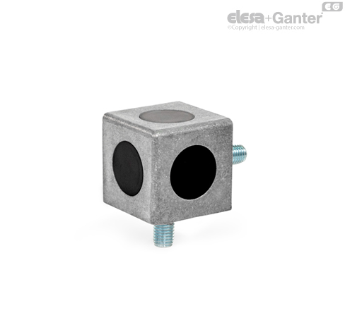 Cube connectors GN 33b fasten two or three aluminum profiles together on their end faces, at right angles and with anti-twist protection. Machining of the profile is not necessary.