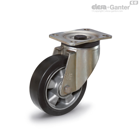 Yellow zinc-plated steel sheet. The presence of a double ball race and the direct contact between the plate and the ball race ring with built-in pin ensure excellent manoeuvrability. Does not require maintenance. The bracket is designed to withstand loads up to 5000N. It ensures capacities that make it suitable for heavy industrial applications.
