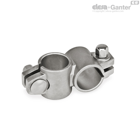 The clamping bores of two-way connector clamps GN 132.5 are mechanically machined and designed for construction tubes GN 990 (see page or DIN 2391, DIN 2395 and DIN 2462.
