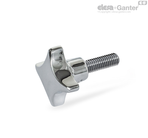 Hand knobs GN 6335.5 satisfy the dimensions of the DIN 6335 Type L but differ in terms of their non-scooping geometry, which makes cleaning easier and helps prevent possible build-up of dirt.