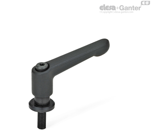 Adjustable hand levers GN 307 are ideal whenever parts have to be clamped in a confined space or in a particular lever position. On releasing the handle the serrations re-engage automatically.