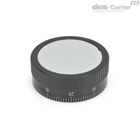 The model fitted with collet offers an absolutely reliable mounting on the shaft and at the same time allows an easy setting of the adjustable scale ring wheel. The scale is wear resistant and easily legible since the engraved alu coloured numbers contrast with the black anodized surface. Besides the standard scale (Coding S) the control handwheels can be supplied with any type of graduation.