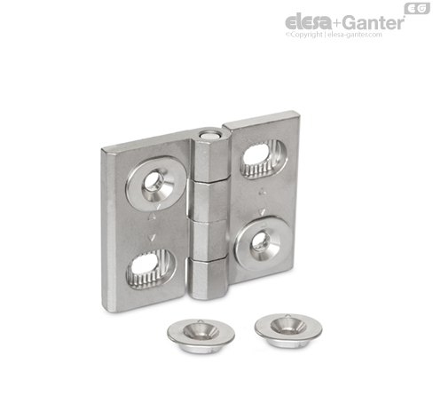 With hinges GN 127 doors and covers can be positioned snugly and in a finely adjusted manner by moving the adjusting bushings. In this way, door gaps can be readjusted and manufacturing tolerances can be compensated. The arrowheads mark the middle of the adjustable range w.