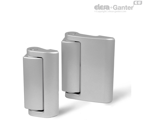 The design with broad hinge halves is intended for mounting to glass or polycarbonate doors.