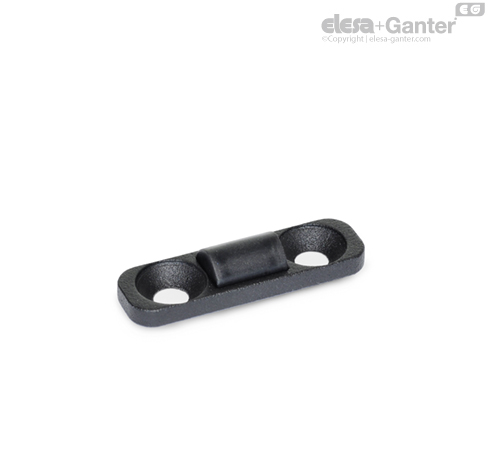 In terms of their dimensions, limit stops GN 2374 have been designed as extras for the GN 237 and GN 337 family of hinges. They can also be bolt-attached when mounting the hinge, with an elastomer element limiting the angle of rotation to the value w.