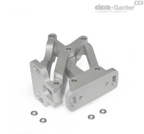 Stainless Steel-Plates with tapped holes GN 7247.4 as well as Stainless Steel-Plates with threaded studs GN 7247.6 are also available for fastening the hinges. The latter can be welded on or inserted through the wall from the outside and fastened in place. The holes d2 receive tensioning or positioning pins, making it easy to position the hinge. This also prevents unintended turning or slipping under load. The pins cannot be removed for subsequent adjustment.