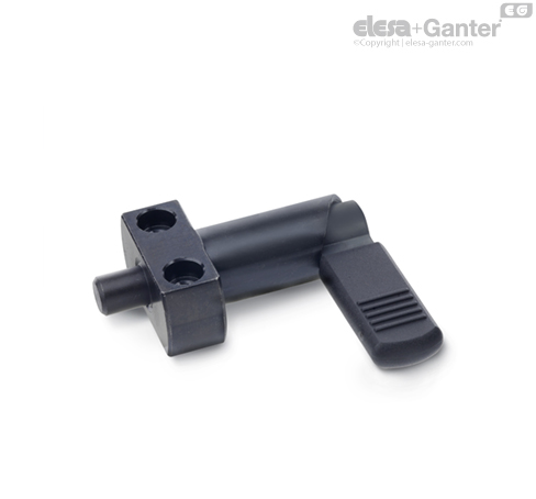 Cam action indexing plungers GN 612.2 are used in cases where the locking pin must not protude all the time. By rotating the lock through 180° the locking pin withdraws itself. A groove keeps the plunger in this position.