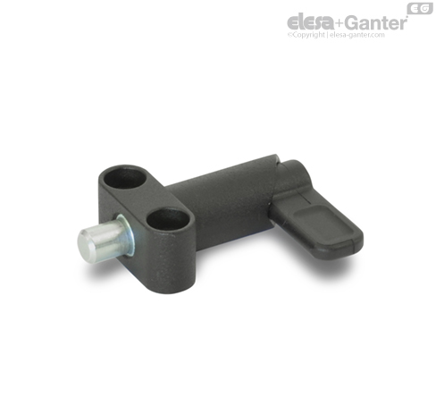 Cam action indexing plungers GN 612.9 are used in cases where the plunger must not protrude all the time. By rotating the lever through 180° the plunger withdraws itself. The groove allows safe positioning.