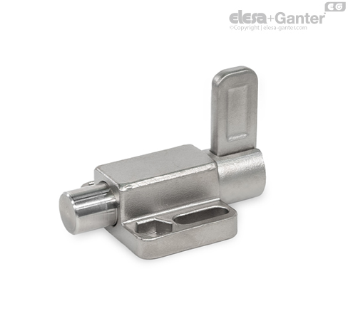 With indexing plungers GN 722.6, the plunger pin is actuated via the pull ring / latch. This is done either manually, with a cable or by means of an extended pull rod with hook. The ST version is designed for applications in steel construction, whereas the stainless steel version A4 is suitable for use in particularly aggressive environments.