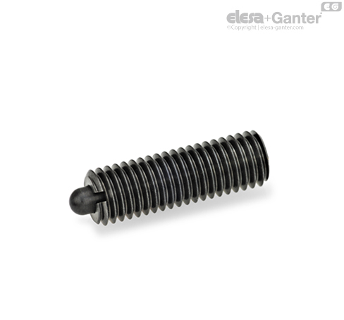 Spring plungers GN 616.1 are used for locking as well as for pressure and hold-off functions. Entry of liquids and dirt is prevented by the seal.