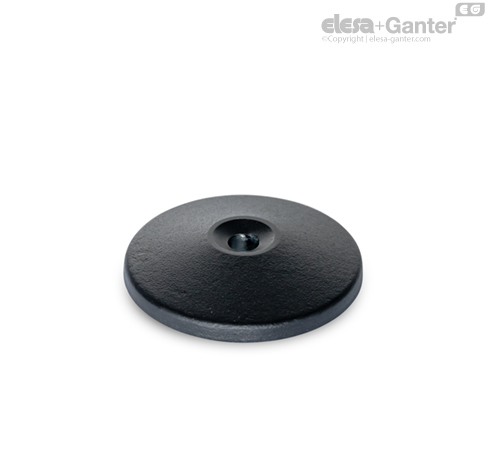 Foot plates GN 37.1 are characterized by their solid construction and large variety. They are used especially on large and heavy systems and machines. The through-hole allows the machine feet to be attached centrally to the ground, making them ideal for compressive and tensile loads.
