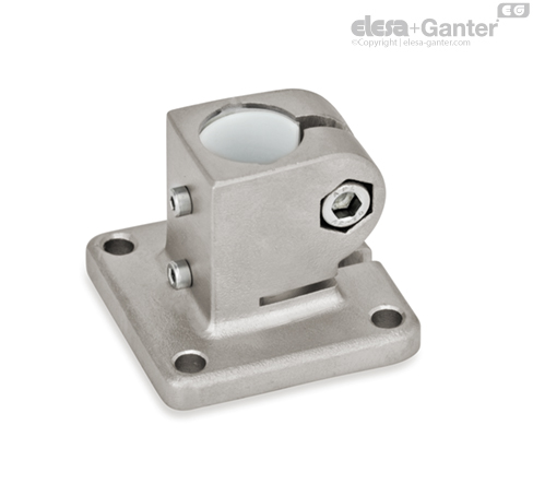 Base plate linear actuator connectors GN 162.1 are based on base plate connector clamps. The additionally provided fastening holes are used to connect to the drive key of a linear actuator. Bores with the designation „G“ are equipped with sleeve bearings.