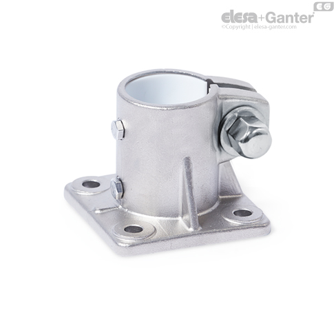 Flanged linear actuator connectors GN 163.15 are based on flanged connector clamps. The additionally provided mounting holes are used to connect to the drive key of a linear actuator. Bores with the designation G are equipped with sleeve bearings.
