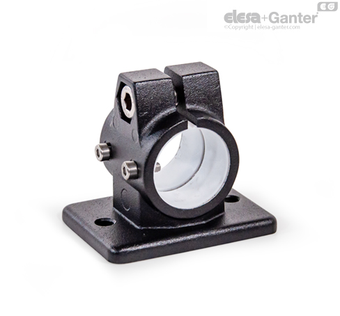 Flanged linear actuator connectors GN 146.13 are based on flanged connector clamps. The additionally provided mounting holes are used to connect to the drive key of a linear actuator. Bores with the designation G are equipped with sleeve bearings.