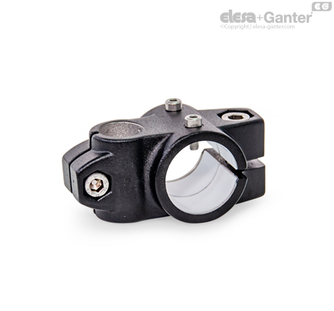 Two-way linear actuator connectors GN 133.1 are based on two-way connector clamps. The additionally provided mounting holes are used to connect to the drive key of a linear actuator. Bores with the designation G are equipped with sleeve bearings.