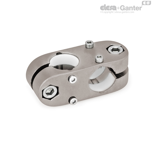 Two-way linear actuator connectors GN 131.2 are based on two-way connector clamps. The additionally provided mounting holes are used to connect to the drive key of a linear actuator. Bores with the designation „G“ are equipped with sleeve bearings.