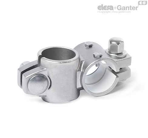 Two-way linear actuator connectors GN 132.15 are based on two-way connector clamps. The additionally provided mounting holes are used to connect to the drive key of a linear actuator. Bores with the designation G are equipped with sleeve bearings.