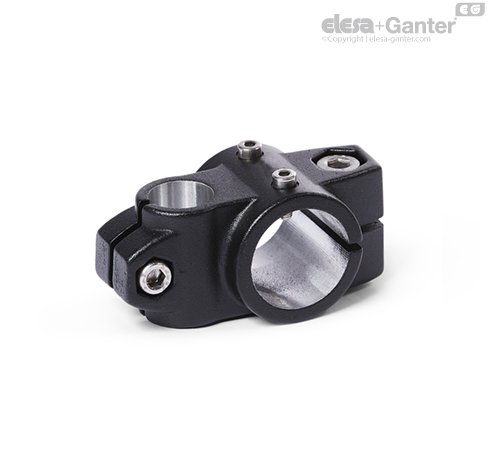 Two-way linear actuator connectors GN 133.1 are based on two-way connector clamps. The additionally provided mounting holes are used to connect to the drive key of a linear actuator. Bores with the designation G are equipped with sleeve bearings.