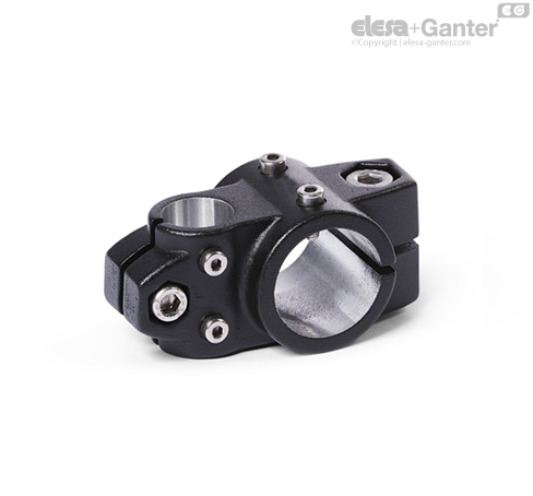 Two-way linear actuator connectors GN 133.2 are based on two-way connector clamps. The additionally provided mounting holes are used to connect to the drive key of a linear actuator. Bores with the designation G are equipped with sleeve bearings.