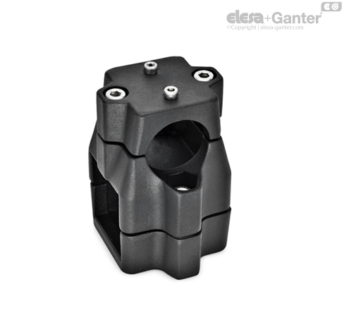 Two-way linear actuator connectors GN 135.1 are based on two-way connector clamps. The additionally provided mounting holes are used to connect to the drive key of a linear actuator.