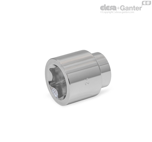 Sockets GN 3124 are used to install the Hygienic Design standard parts listed in the table. In conjunction with the aluminum material used, the rounded hex geometry of the wrench flats transfers the torque to the screw head without causing damage.