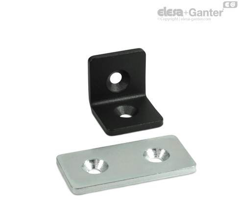 Angle pieces and shackles GN 967 are preferably used in connection with profile section systems. Square connections or connections with same contact area can so be realised in the smallest of spaces and with a high degree of stability.
