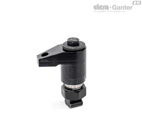 Down-thrust clamps GN 9192 are compact clamping elements for quick and secure clamping in tool and fixture construction. Rotating and tightening the clamping screw or the adjustable hand lever moves the clamping arm downwards to clamp the workpiece.