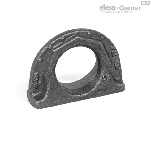 Lifting points GN 589 are intended for suspending lifting gear and lashing elements and are characterized by a particularly low profile. They are welded e.g. to load attachment points or directly onto the load itself and can absorb loads in any direction.