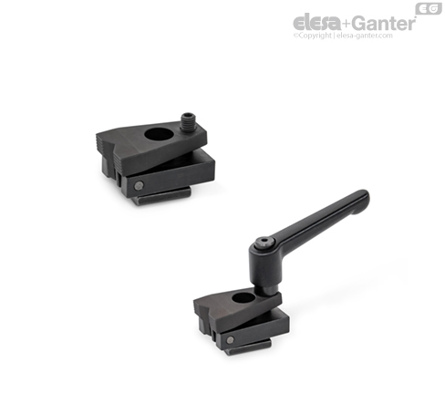 Side clamps can be screwed in directly, e.g. in a mounting plate, or fastened to machine tables with T-slots. In addition, they can be mounted in any position perpendicular to the T-slot using the slotted support blocks GN 9190.3, which are available as accessory.