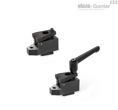 Side clamps can be screwed in directly, e.g. in a mounting plate, or fastened to machine tables with T-slots. In addition, they can be mounted in any position perpendicular to the T-slot using the slotted support blocks GN 9190.3, which are available as accessory.