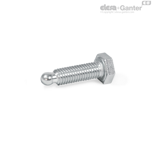 Stainless Steel-Hexagon head screws GN 933.5, type ZK, feature a spherical pivot whose diameter d4 is smaller than the core diameter d1 of the thread. This makes them suitable for holding thrust pads GN 631 / GN 631.5 which must be ordered separately.