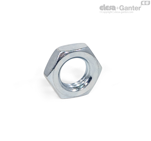 The flat design makes the hex nuts ideal for shorter threads. When mounting indexing plungers, they reduce the adjustment range only slightly, which may be of significance especially when using two lock nuts.