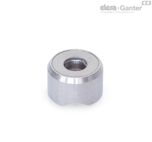Thrust pads GN 6311.1 are used in conjunction with grub screws fitted with thrust point (grub screws DIN 6332 , tommy screws DIN 6304 and DIN 6306 to transmit clamping force. They align themselves on uneven and non-parallel surfaces and thus prevent the rotating force being transmitted to the workpiece.