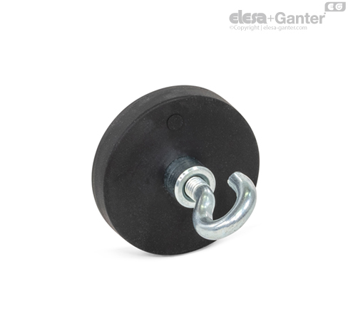 The retaining magnets GN 51.10 with rubber jacket form a system together with the steel part that shields and strengthens the magnet, optimally concentrating the magnetic flux on the rubberized magnetic surface.