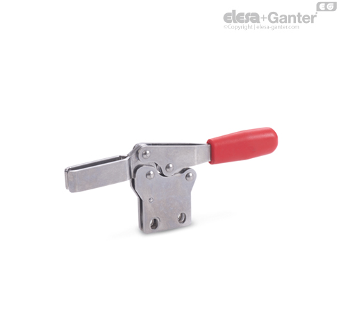 GN 820.1 horizontal acting toggle clamps work according to the toggle principle: lever and clamping bar move in the opposite direction.