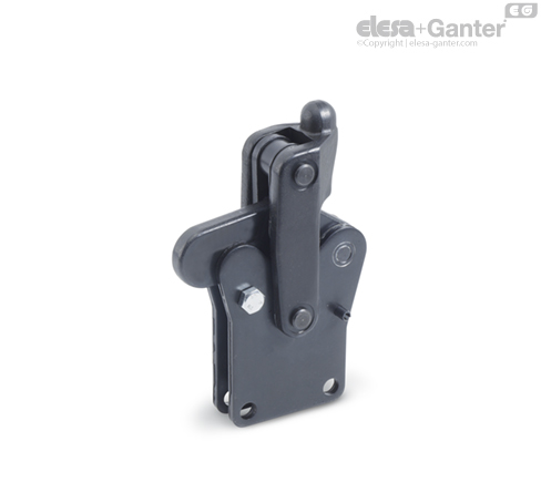 Knee lever modules GN 810.12 have the same properties and attributes as the „Longlife“ GN 810.10/ GN 810.11 toggle clamps. The clamping arms are die-forged, the remaining steel sheet parts have been reinforced, and bearing pins and rivets are hardened and ground.