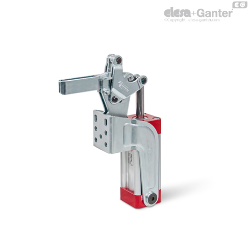 The clamping principle of toggle clamps GN 862 is identical in construction and dimensions to the manually operated vertical toggle clamps GN 812.