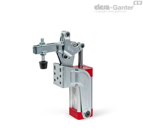 The clamping principle of toggle clamps GN 862 is identical in construction and dimensions to the manually operated vertical toggle clamps GN 812.