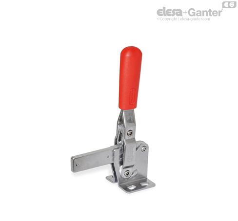 GN 810 vertical acting toggle clamps work according to the toggle principle: lever and clamping bar move in the same direction. In the clamped position the operating lever is in its vertical position.