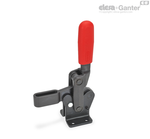 Toggle clamps „Longlife“ GN 810.10 are an advance development of GN 810. The steel sheet design of the clamp and lever arms is replaced by precision or die-forged components. The remaining steel sheet parts have been reinforced, bearing pins and rivets are hardened and ground.