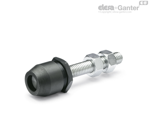In order to pass the dead centre point and / or compensate for work piece tolerances when using hand operated toggle clamps, an elastic thrust pad such as GN 708.1- can be used.