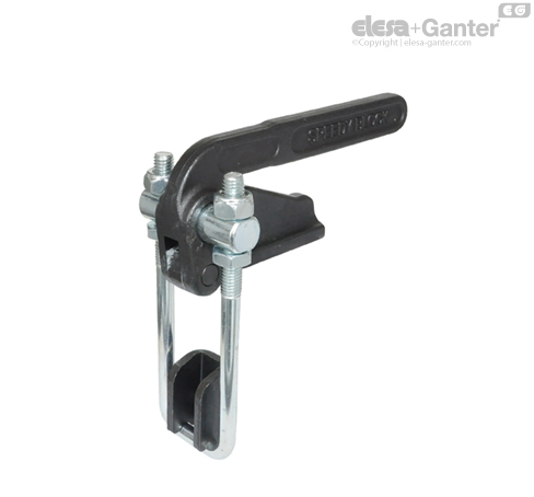 The U-bolt latch of GN 852.1 vertical hook type toggle clamps is adjustable within the adjusting range.