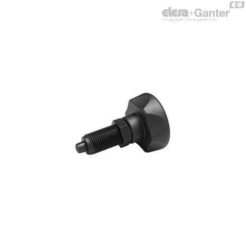 SUPER-technopolymer product based on ELESA technology, dimensions of the threaded body and plunger according to GN 612 standards as agreed with Otto Ganter GmbH Co. KG.