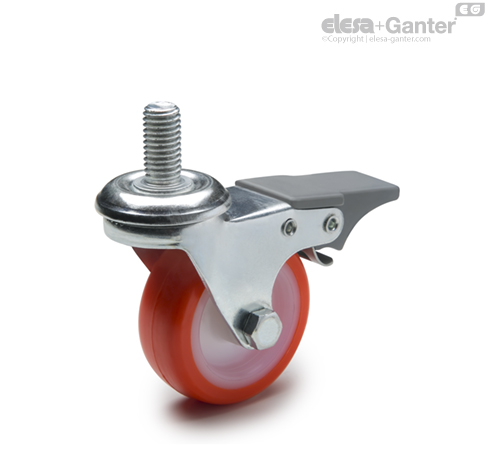 Castors for the general public, excellent rolling resistance and elasticity features, high wear and tearing resistance.