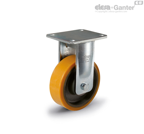 Suitable for heavy industrial applications and severe conditions of use, such as impact and high speeds. The mould-on polyurethane wheel ensures excellent rolling resistance and elasticity, high wear and tearing resistance. For further information see RE.F4.