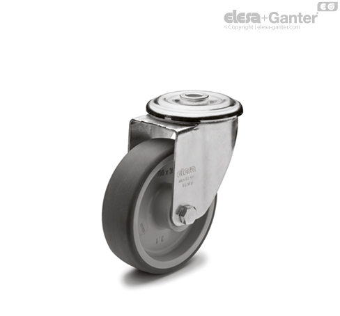 Zinc-plated steel sheet, the bracket is designed to withstand loads up to 1800N. The presence of a double ball race and direct contact between the plate and the ball race ring with built-in pin ensure excellent manoeuvrability. Does not require maintenance.