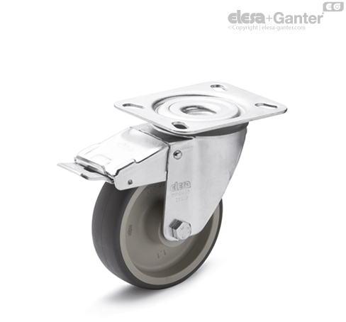 Total brake that locks the wheel and bracket rotation. The optimised dimensions and the retractable pedal ensure minimal space occupied and maximum actuation ease. Hardened carbon steel spring.