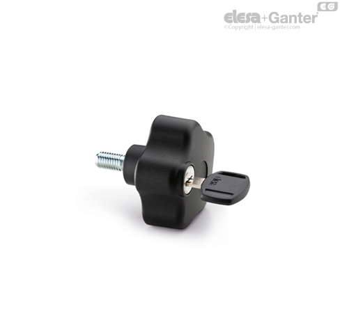 For clamping and unscrewing the knob, insert the special key into the lock and turn it by 180°. By so doing the clamping element and the knob form a single body. When the lock is brought back to the starting position and the key is removed, the knob turns freely preventing the unscrewing.