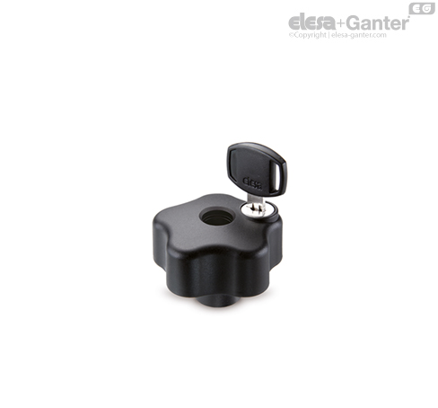 For clamping and unscrewing the knob, insert the special key into the lock and turn it by 180°. By so doing the clamping element and the knob form a single body. When the lock is brought back to the starting position and the key is removed, the knob turns freely preventing the unscrewing.