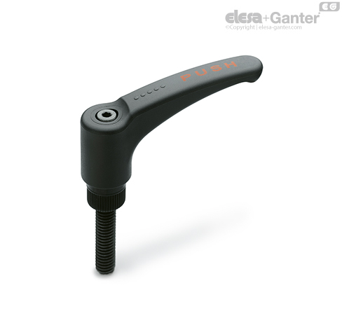 Glass-fibre reinforced technopolymer clamping element, black colour, with knurling on the protruding part to make initial tightening easier. AISI 302 stainless steel return spring.